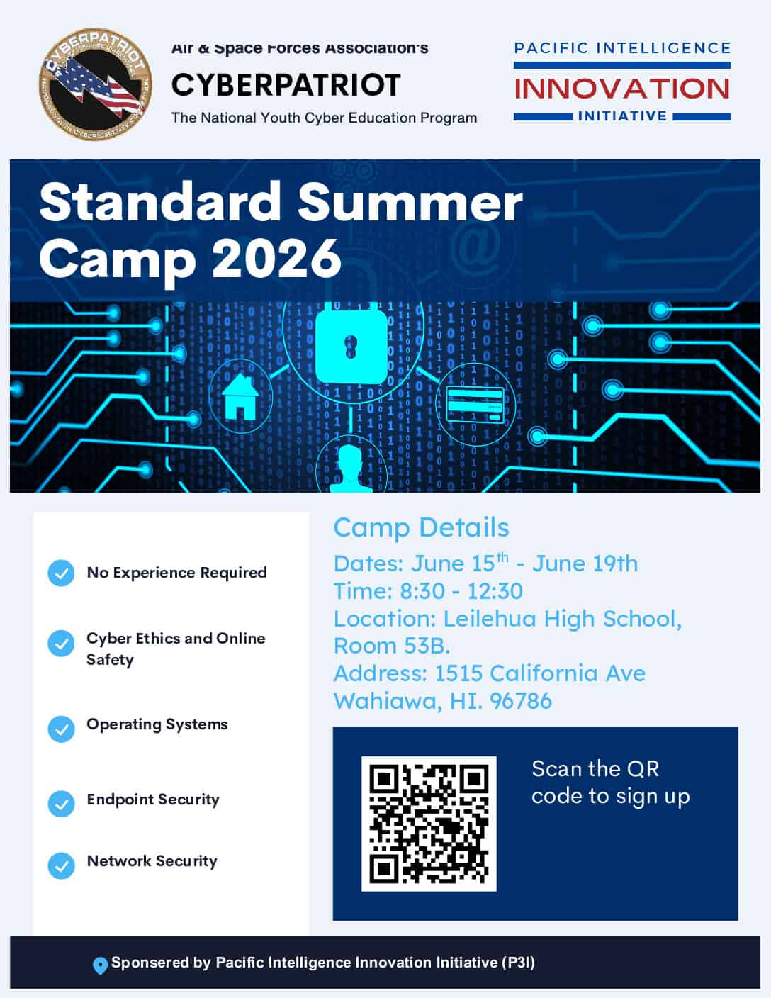 June 15th- June 19th, 2026 | 8:30 AM – 12:30 PM | Leilehua High School, Room 53B | Build cybersecurity skills this summer at CyberPatriot Camp 2026—no experience needed, just […]
